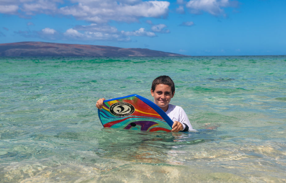 Ride the waves on the 42" professionally shaped Maui Grom boogie board from California Board Company! Leash included.